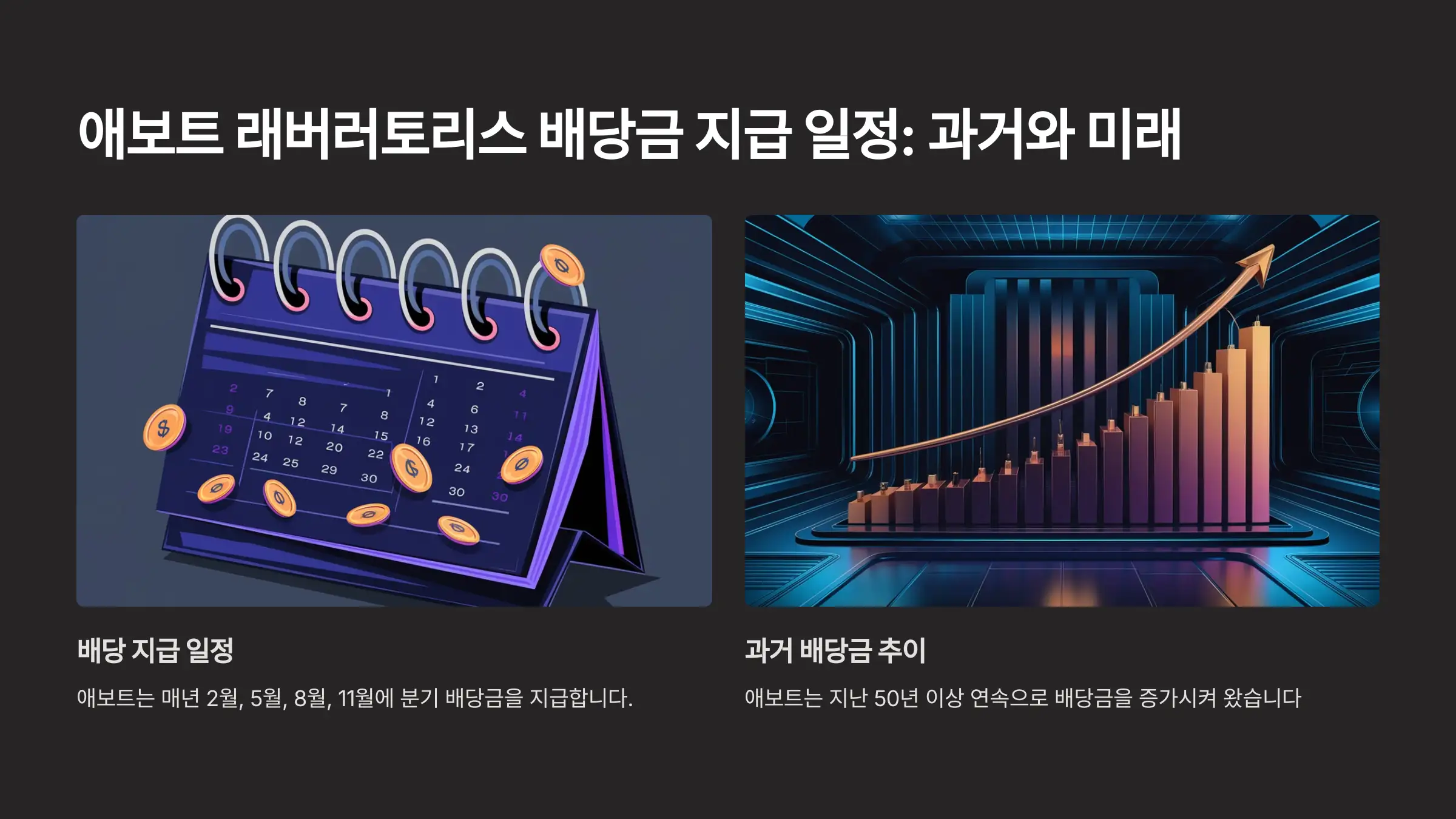 특히 안정적인 배당 정책으로 오랜 기간 투자자들의 신뢰를 받아왔으며, '배당 귀족주'로서의 지위를 꾸준히 유지하고 있습니다. 이번 글에서는 애보트 래버러토리스의 최신 배당 현황과 과거 이력, 투자 시 유의점 등을 상세히 살펴보겠습니다.