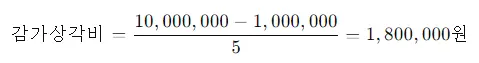 정액법에서 감가상각비는 다음과 같이 계산됩니다: