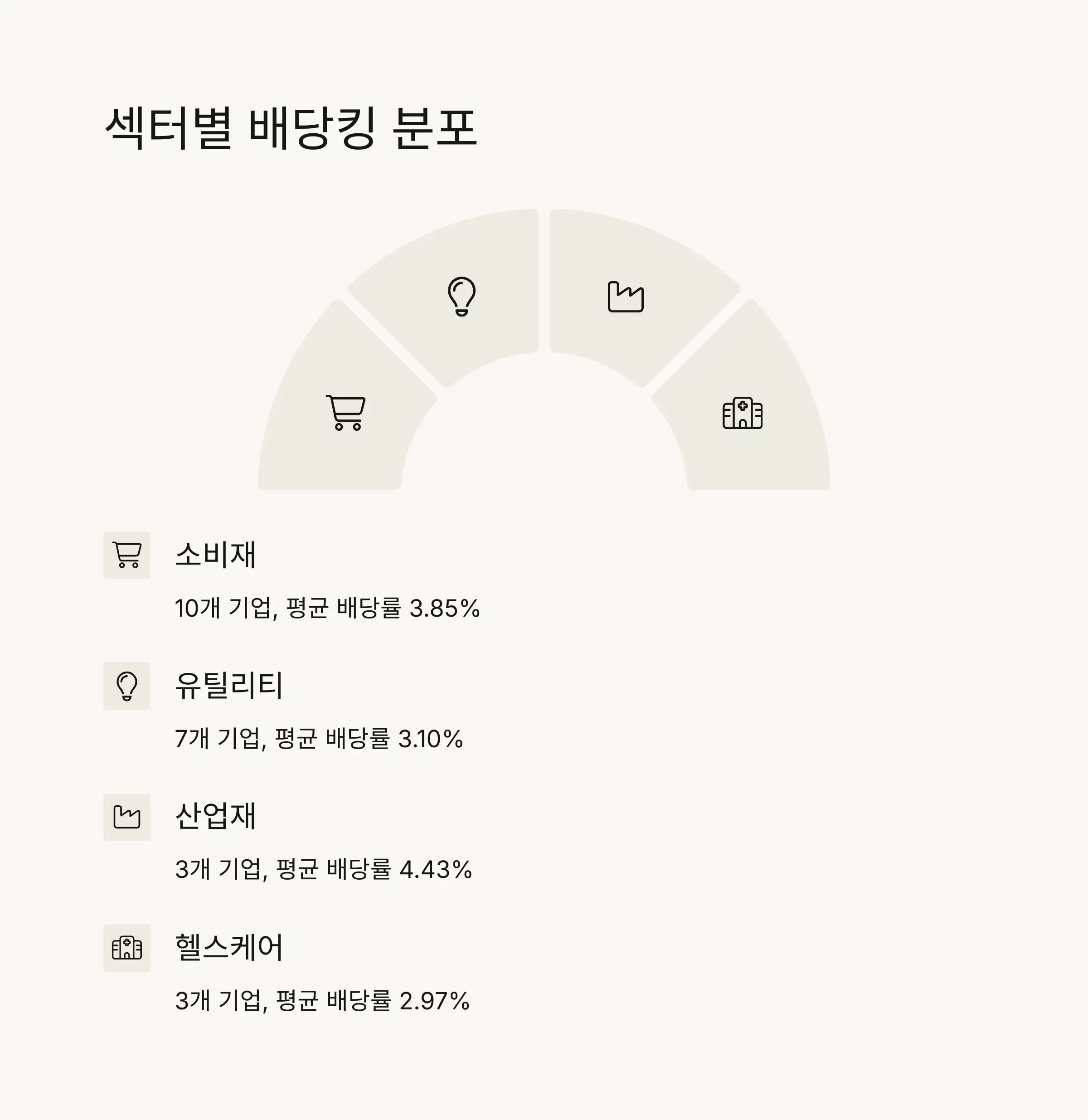 | 섹터 | 기업 수 | 평균 배당률 |